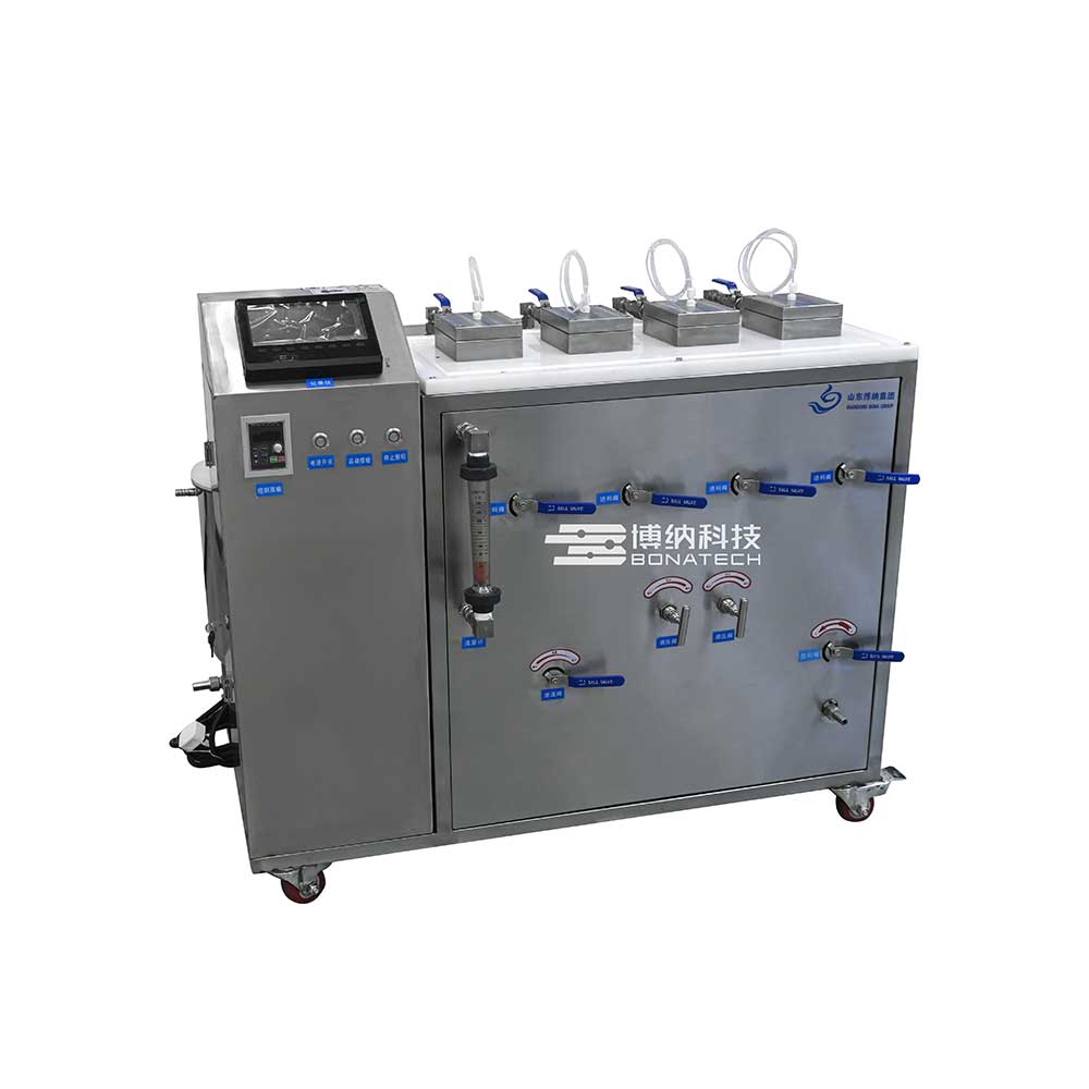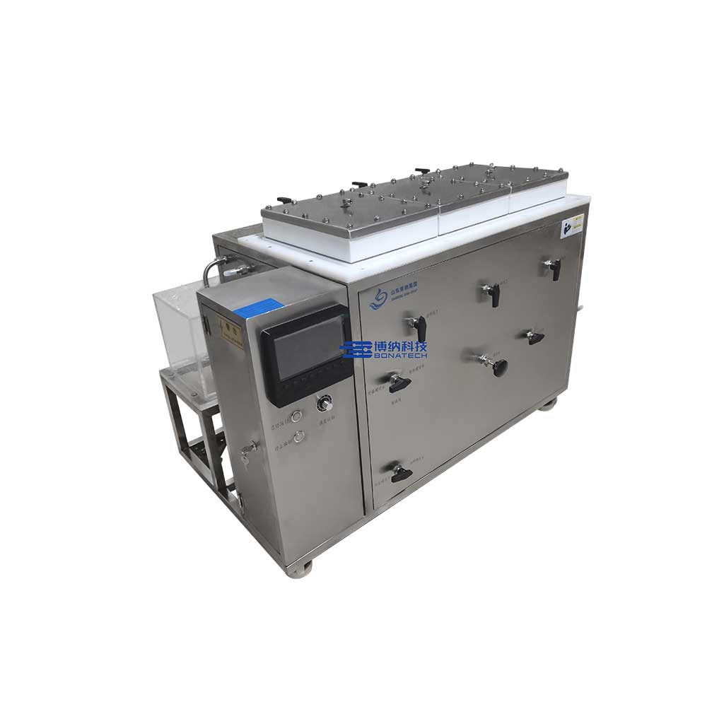 自動(dòng)控制膜片測(cè)試系統(tǒng)的主要組成部分包括供料泵、膜池、物料罐及其控制系統(tǒng)等。山東博納生物科技集團(tuán)有限公司生產(chǎn)的自動(dòng)控制膜片測(cè)試系統(tǒng)可以換裝微濾膜、超濾膜、納濾膜、反滲透膜、海水/苦咸水淡化膜,適合各類膜片測(cè)試研究,少量物料的過濾分離、教學(xué)演示以及實(shí)驗(yàn)研究 。廣泛應(yīng)用于生物、制藥、食品、化工、環(huán)保等領(lǐng)域,用于料液的濃縮、分離、提純、澄清、除菌等工藝實(shí)驗(yàn)??筛鶕?jù)實(shí)驗(yàn)要求定制不同尺寸大小的圓形或方形膜池。